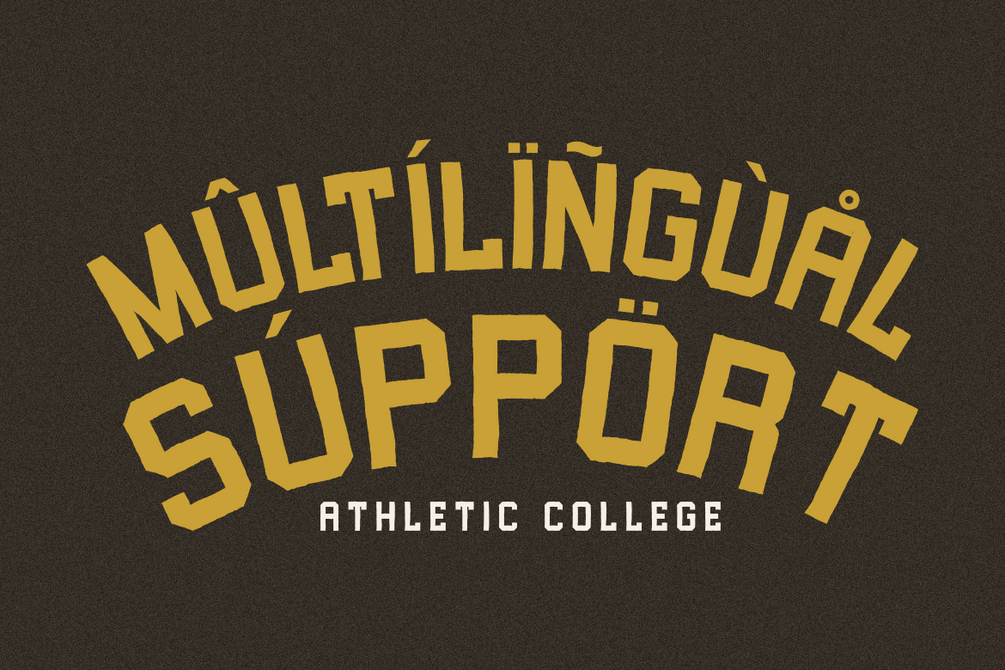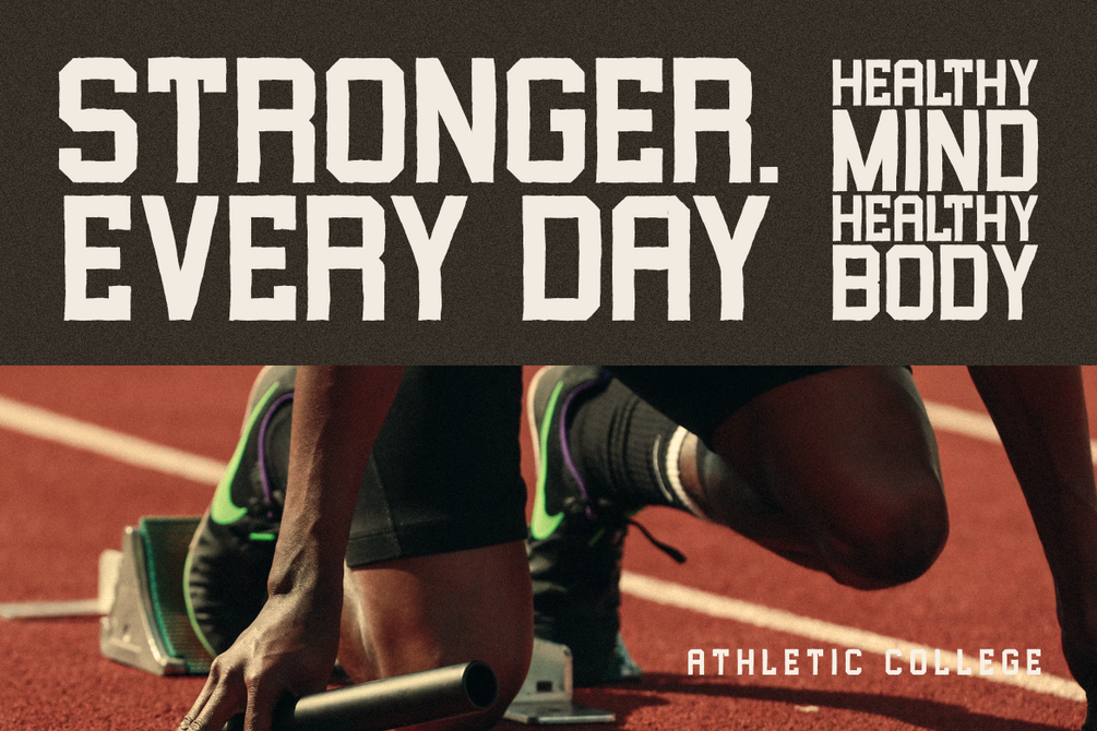 Athletic College is a robust rough sport font with a distinct vintage aesthetic. This typeface brings a powerful and energetic feel, reminiscent of classic athletic department logos and collegiate branding. Its sturdy, weathered texture and bold presence make it an excellent choice for sports-related designs, team merchandise, event posters, retro-inspired logos, and any project requiring a strong, authentic vintage sport vibe. Infuse your designs with the competitive spirit and timeless character of Athletic College.