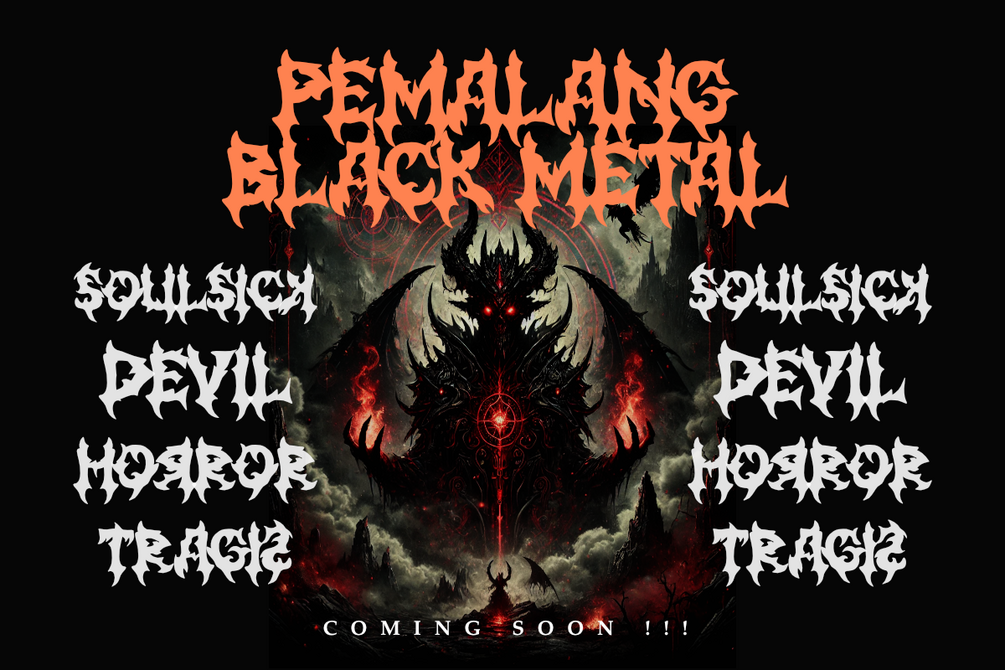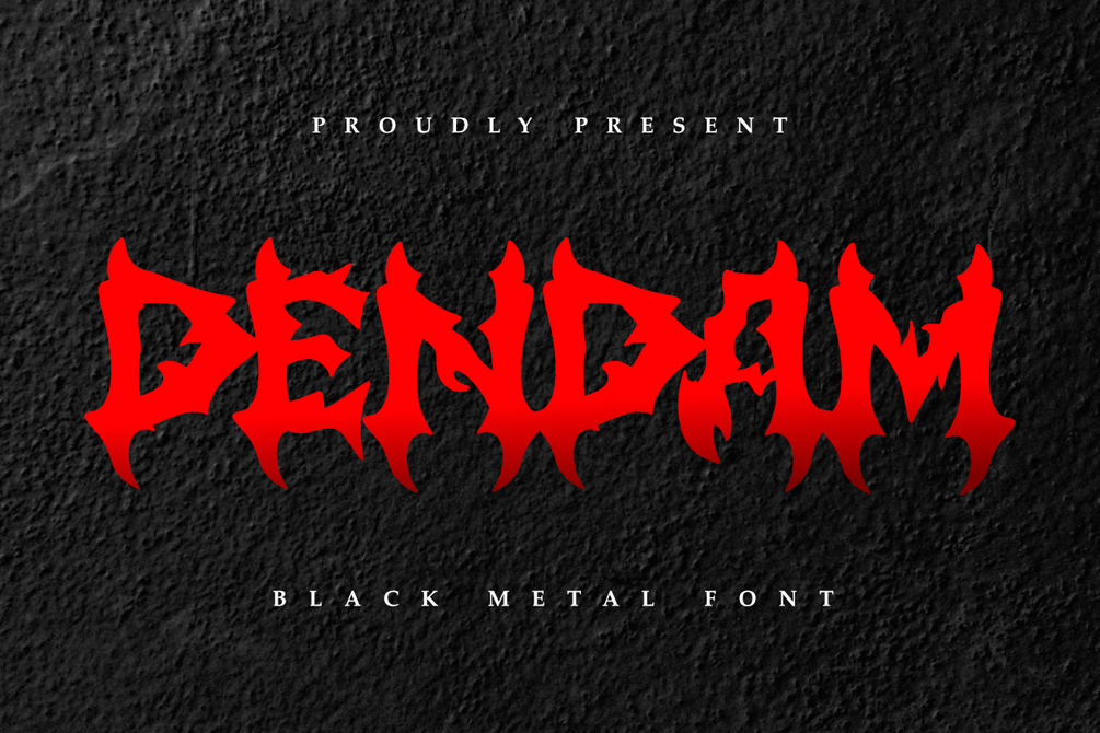 Dendam is a fierce and aggressive black metal font with sharp, jagged edges, making it the perfect choice for band logos, album covers, posters, merchandise, tattoos, gothic apparel, horror-themed designs, Halloween decorations, and dark fantasy projects.